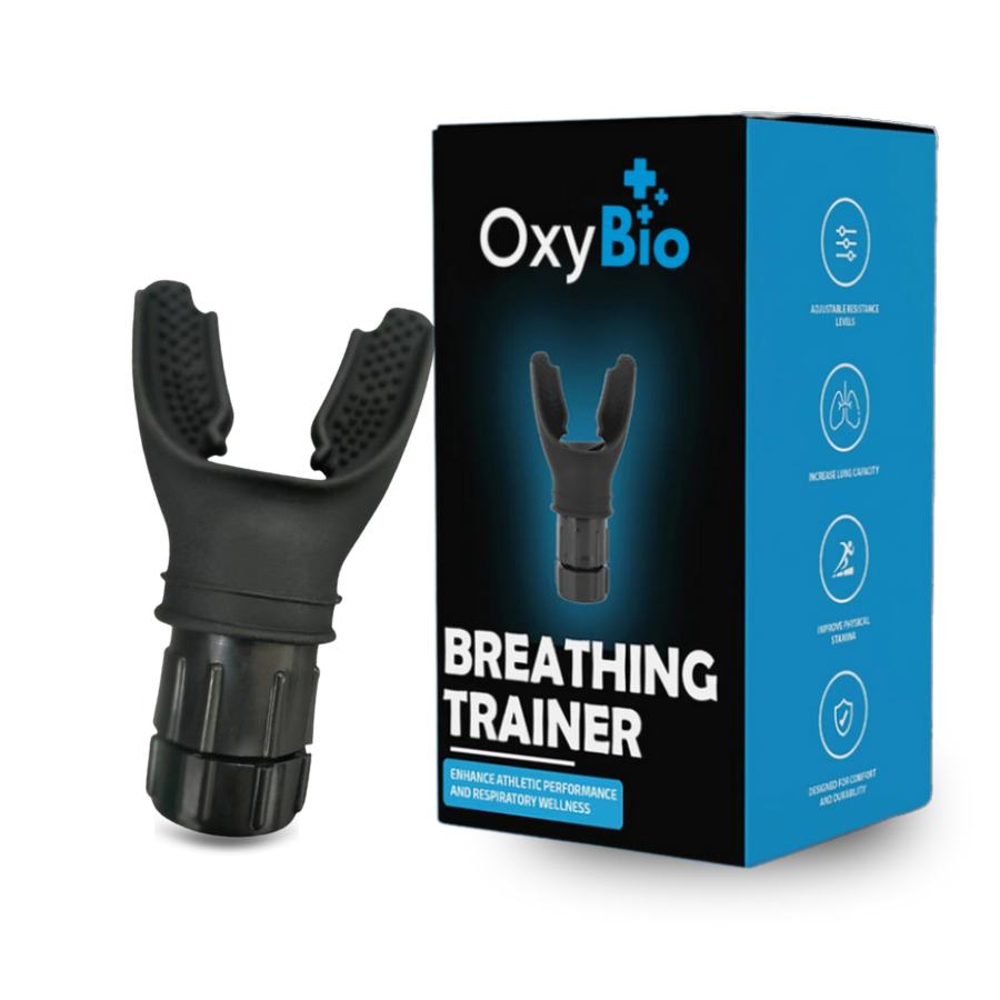 OxyBio™ es un potente dispositivo de entrenamiento pulmonar diseñado para mejorar tu fuerza respiratoria, resistencia y rendimiento general, de forma completamente natural.